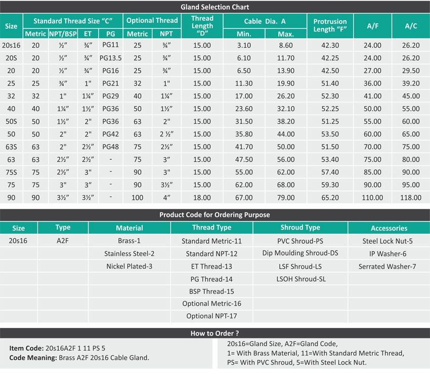 Accessories : PVC Shroud, Earth Tag, Thread Seal, Adaptor & Reducer, Serrated Washer