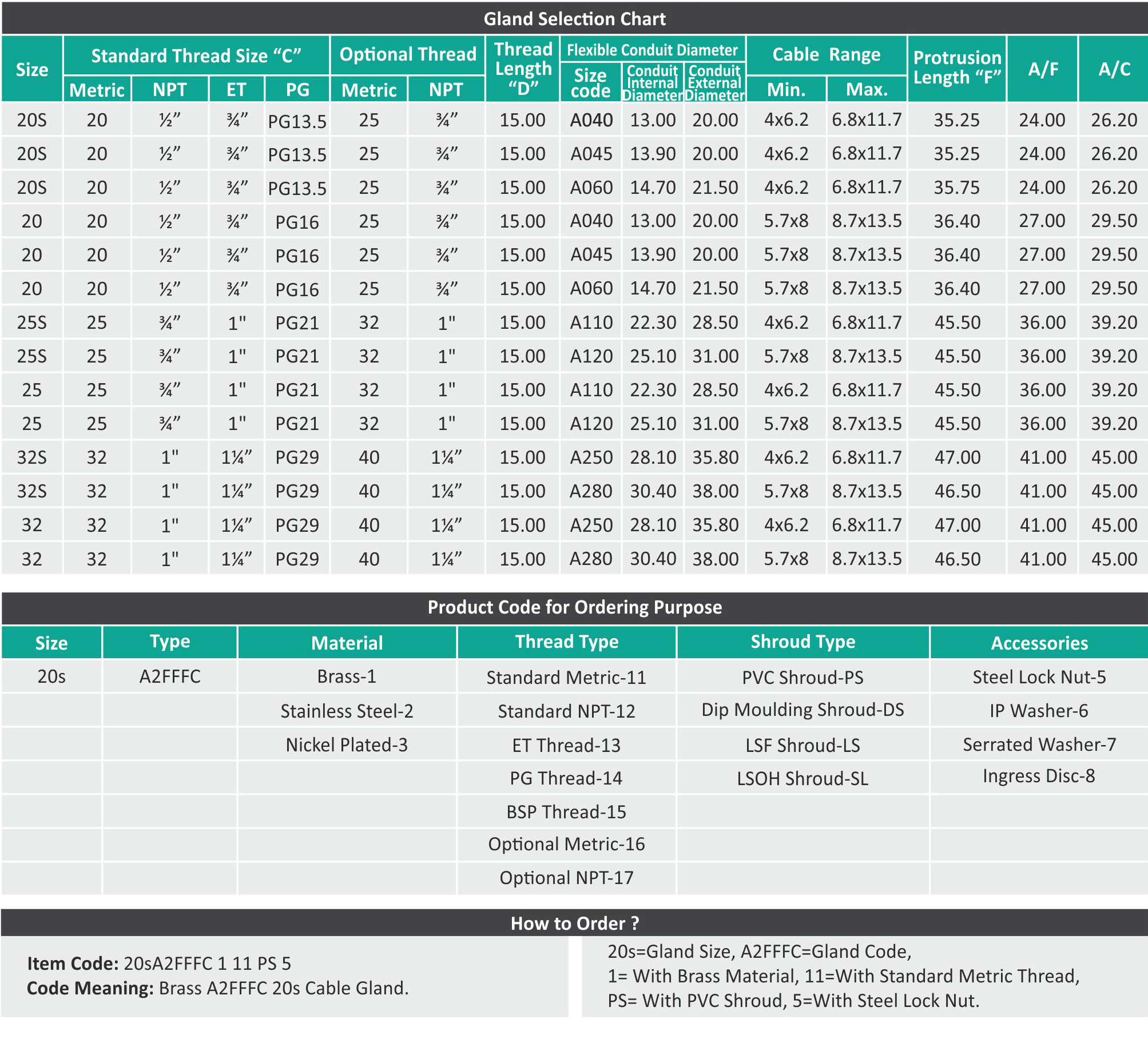 Accessories : PVC Shroud, Earth Tag, Thread Seal, Adaptor & Reducer.