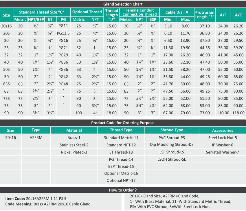 Providing flameproof seal on outer sheaths of all types of unarmoured cable in indoor and outdoor hazardous area. With rotating male rigid conduit connection facility.