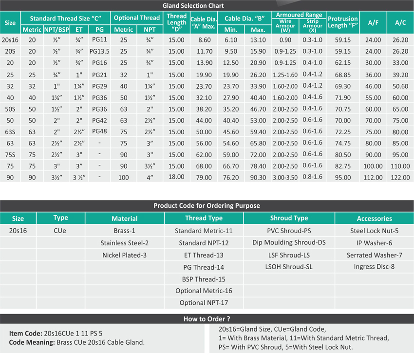 Function : Providing environmental seal on the cable outer sheath. Also provides mechanical cable retention electrical continuity via armoured wire termination in indoor & outdoor hazardous area use with all types of Single Wire Armour (SWA), Aluminium Wire Armour (AWA), Pliable Wire Armour (PWA), Steel Tape Armour (STA), Wire Braid Armour, Aluminium Strip Armour (ASA), Screened Flexible (EMC) Wire Braid (e.g. CY / SY), Armoured & Jacketed providing flameproof seal on cable inner sheath and environmental seal on cable outer sheaths.