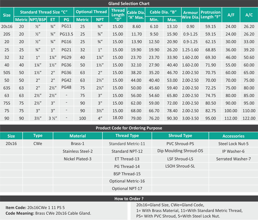 Function : Providing environmental seal on the cable outer sheath. Also provides mechanical cable retention & electrical continuity via armoured wire termination in indoor and outdoor hazardous area with all types of SWA cable.