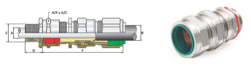 Function : For indoor & outdoor hazardous area use with all types of Single Wire Armour (SWA), Aluminium Wire Armour (AWA), Pliable Wire Armour (PWA), Steel Tape Armour (STA), Wire Braid Armour, Aluminium Strip Armour (ASA), Screened Flexible (EMC) Wire Braid (e.g. CY / SY), Armoured & Jacketed providing flameproof seal on cable inner sheath and environmental seal on cable outer sheaths