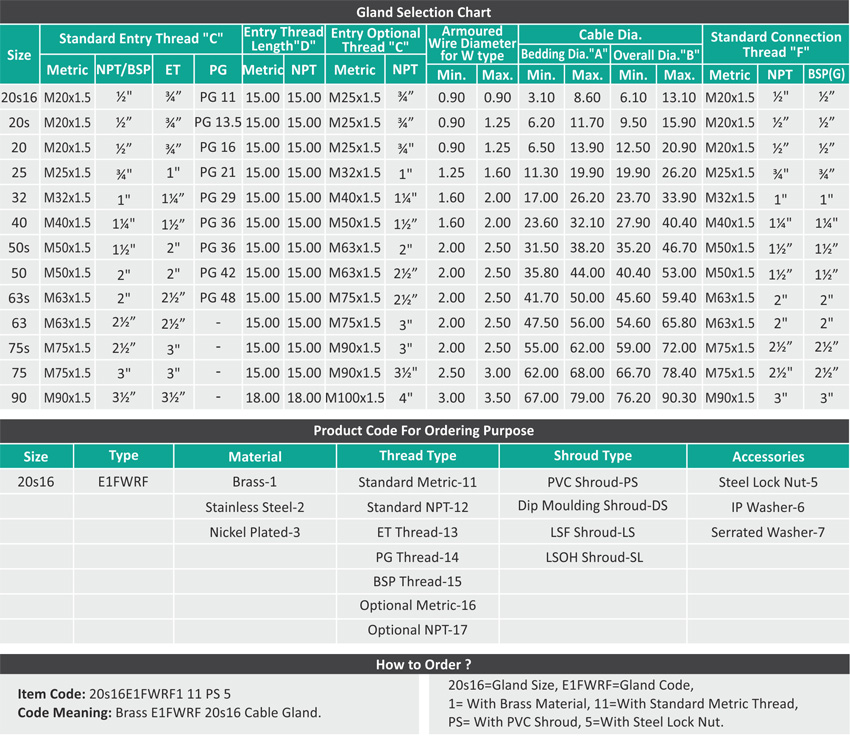 Application : For indoor & outdoor hazardous area use with all types of SWA cable providing flameproof seal on cable inner sheath and environmental seal on cable outer sheaths. Also provides mechanical retention & electrical continuity via armour wire termination with rotating rigid conduit connection facility.