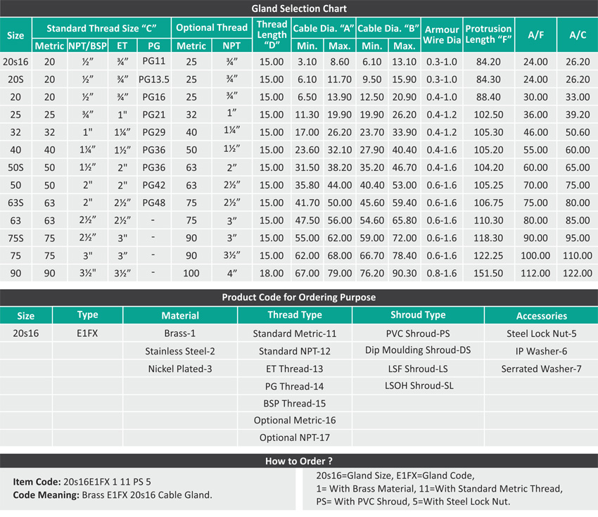 Application : For indoor & outdoor hazardous area use with all types of STA cable providing flameproof seal on cable inner sheath and environmental seal on cable outer sheaths. Also provides mechanical retention & electrical continuity via armour wire termination.