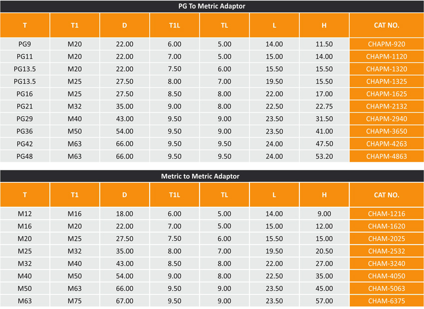 Adaptors are used where the thread size of the cable gland or connection device is larger than, or of an equivalent size, to the entry thread of the enclosure.