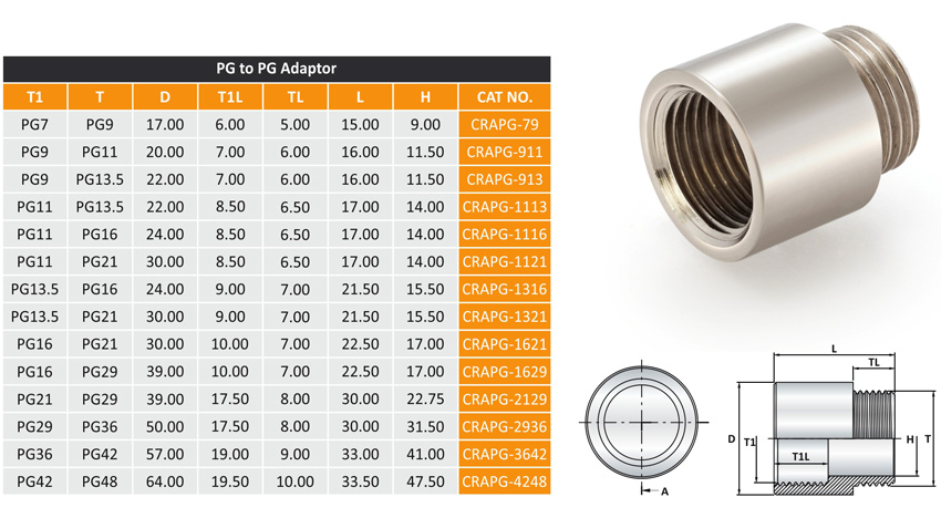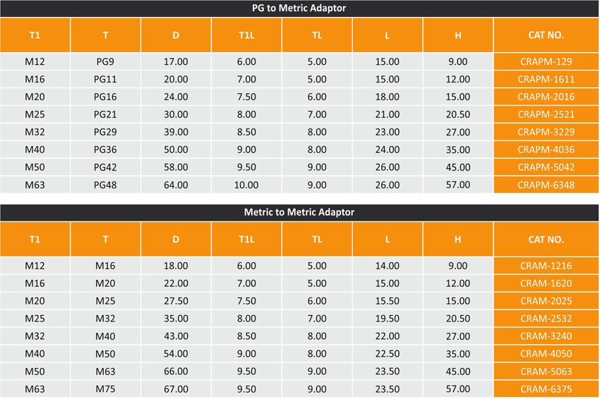 Adaptors are used where the thread size of the cable gland or connection device is larger than, or of an equivalent size, to the entry thread of the enclosure.